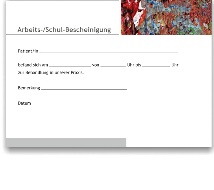 Atteste für Schule oder Arbeitgeber - gut beschreibbar mit allen Schreibgeräten - zum praktischen Block geleimt.