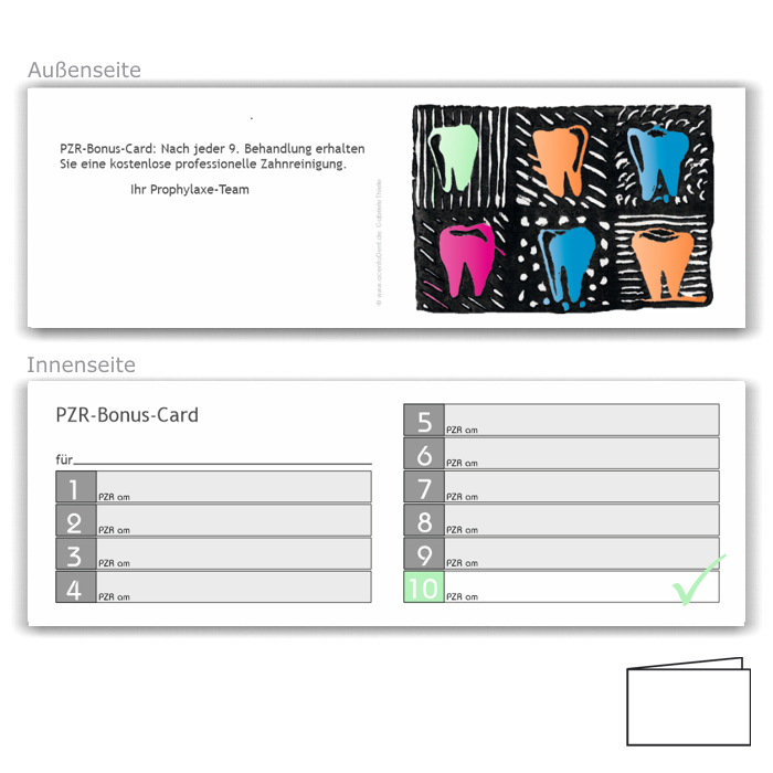mit 9/1 Feldern für 9 Behandlungstermine + 1 kostenlose PZR sowie mit persönlichem Namensfeld des Patienten/der Patientin.